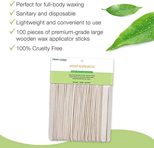 Clean + Easy Wooden Wax Applicator Sticks for the Body, Large Disposable Spatula, for Smooth and Easy Application, for Arms, Legs, Chest, and Back, for Salon and DIY Home Waxing, 100 pcs.