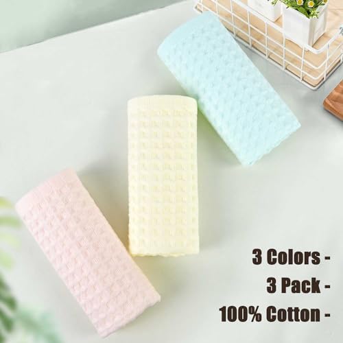 Colorful Waffle Wonderland: Imagine cuddling up with not one, but three cozy cotton washcloths, each sporting a delightful waffle weave! These little charmers come in a trio of hues – creamy dream, piggy pink, and seafoam green – perfect for giving every family member their special splash of color. No more mix-ups, just pure, colorful joy for each day!