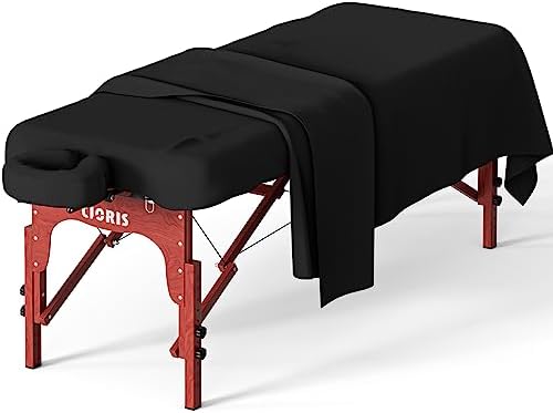 CLORIS Universal 3-Piece Massage Table Sheet Set Premium Soft Microfiber Includes Massage Table Cover, Fitted Sheet and Face Rest Cover – Black