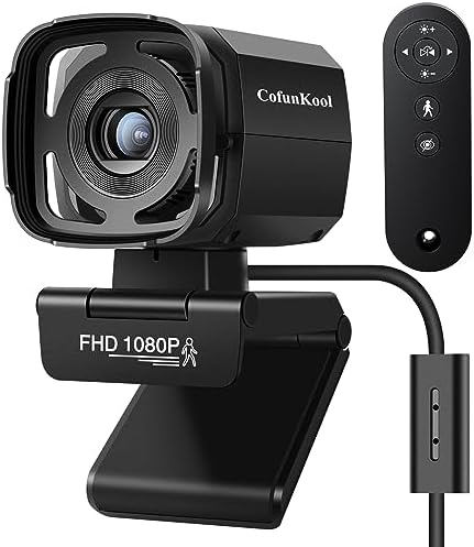 CofunKool Computer Camera for Desktop, Web Cam for PC Monitor, Webcam with Mic, AI Auto Tracking, Full HD 1080P 30fps Video Calls, WDR, Low Light Correction, Noise Cancelling, Remote Control