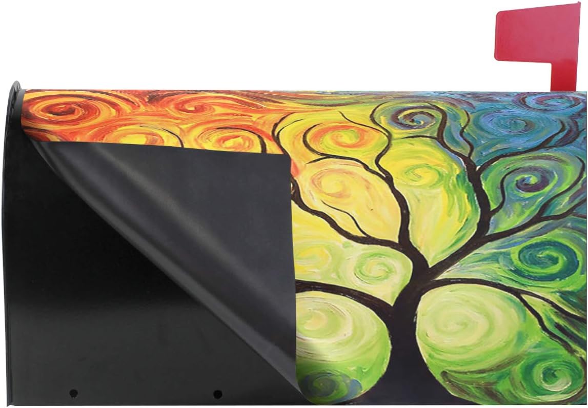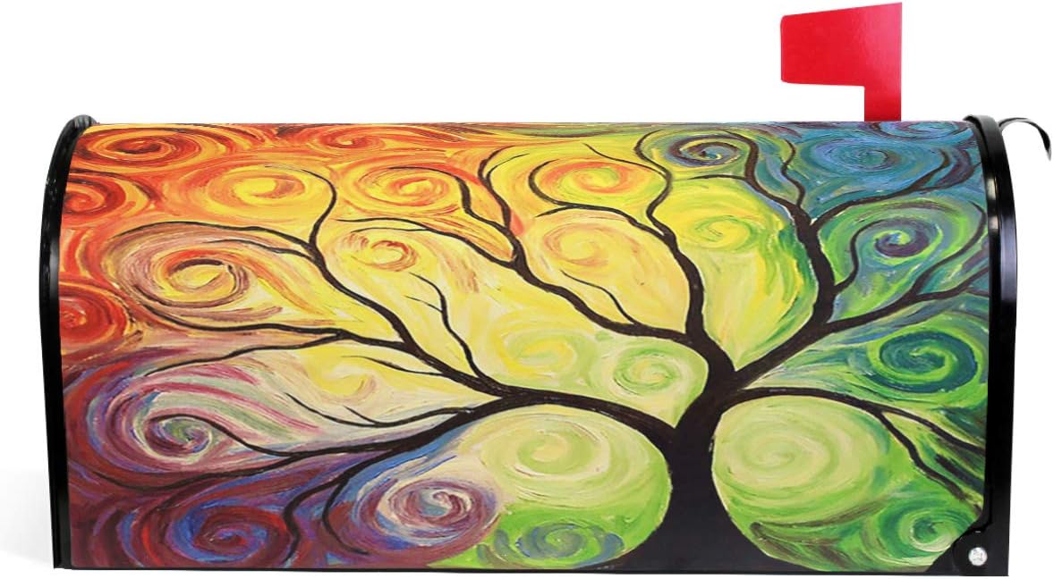 Colorful Rainbow Tree of Life Branch Mailbox Covers Standard Size Abstract Tree of Life Summer Spring Autumn Winter Magnetic Mail Cover Letter Post Box 21″ Lx 18″ W