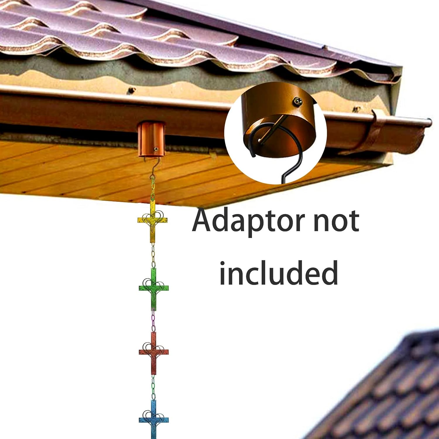 Cross Heart Rain Chain – 8.5 Feet Length Metal Rain Chains for Gutters Rain Catcher Chain for Downspouts, Rain Chime Multicolor Powder Coated