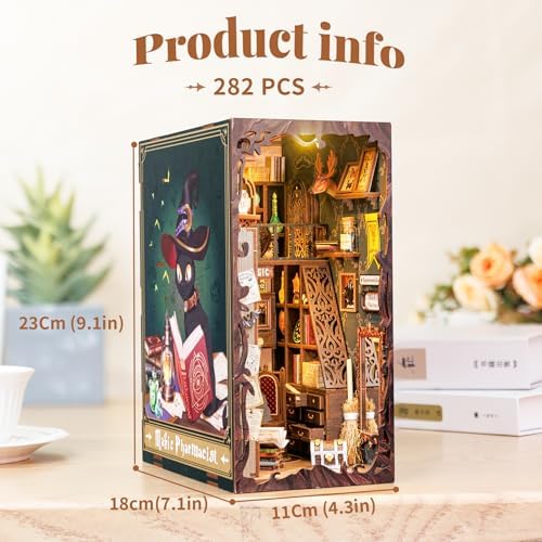 CUTEBEE DIY Book Nook Kit with Dust Proof, Bookshelf Insert DIY Miniature Kit Booknook Bookend Stand Bookcase Model Build Creativity Kit Decor Alley with LED Light (Magic Pharmacist)