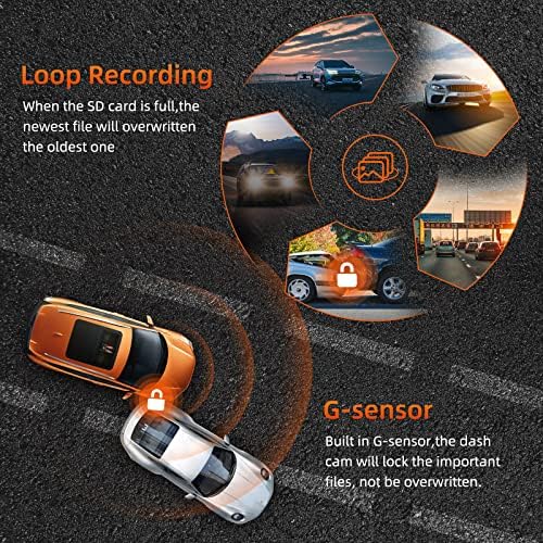 【Seamless Loop Recording & G-sensor】When the storage limit is reached on the memory card, new recordings will automatically overwrite oldest recordings. Triggered by G-sensor, it can automatically detect a sudden shake/collision and lock the footage to prevent the video from being overwrote even in loop recording.