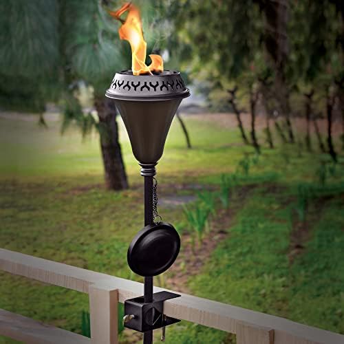 60” LARGE FLAME GARDEN TORCH: Accentuate the ambiance of your backyard, garden, patio, lawn or outdoor arena with stylish 2-IN-1 Large Flame Citronella Oil Torch. Its clever design converts from a full-sized 60” backyard garden torch with ground stake to a 33” mid-sized deck torch to light your deck with the included deck-mount bracket.
