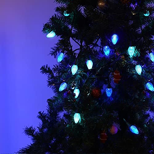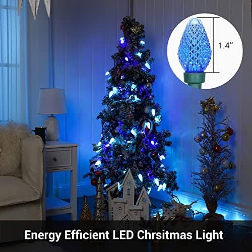 【Blue LED String Light】25 count blue bulbs and 25 count turquoise bulbs, C7 bulb type, these LED large bulbs are brighter than traditional incandescent string lights, flicker-free lighting, create an ice world for you during Christmas days, brightening up your Christmas tree, yard, patio, gardern etc.