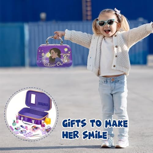 Disney Wish Fashion Purse Set with Nail Polish, Nail File, Lip Gloss, Lip Stick, Lip Balm, Crown, Eyeshadow, Brushes, and More, Ages 3+, for Parties, Sleepovers & Makeovers by Townley Girl