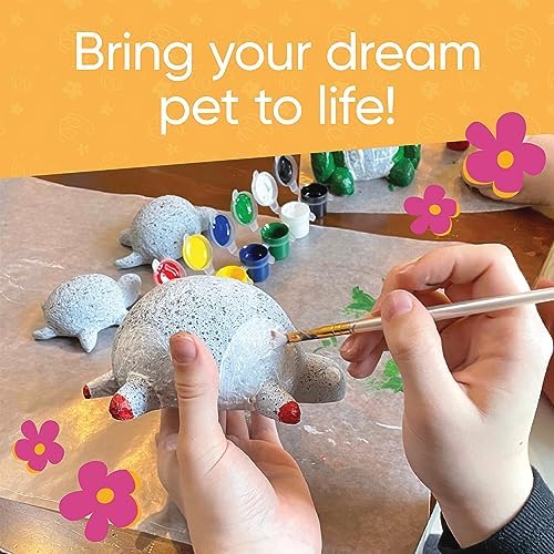 BRIGHT, WEATHER-RESISTANT PAINTS: Paints come in 12 exciting, bright primary colors and are weather-resistant for durability, and one paintbrush is included to get the creativity started. Kids ages three and up can paint and design their rock pets however they wish-there’s no limit to imaginative creativity!