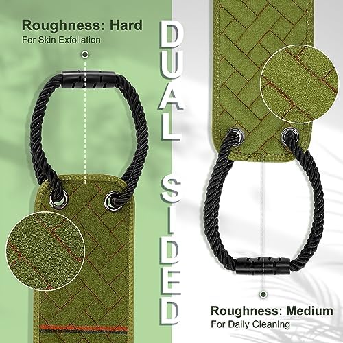 Exfoliating Back Scrubber with Upgraded Handles, 38.5 Inch Double-Sided Body Scrub Bath Exfoliator, Exfoliating Washcloth for Use in Shower, Back Washer to Deep Clean Your Skin for Men & Women (Green)