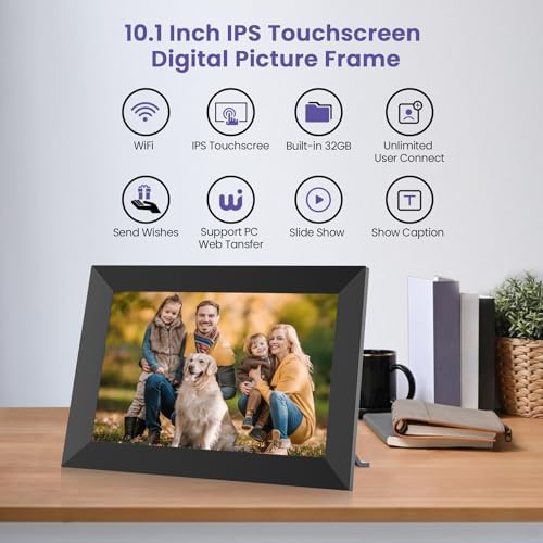 FANGOR 10.1 Inch WiFi Digital Picture Frame 1280×800 HD IPS Touch Screen, Electronic Smart Photo Frame with 32GB Storage, Auto-Rotate, Instantly Share Photos/Videos and Send Best Wishes from Anywhere