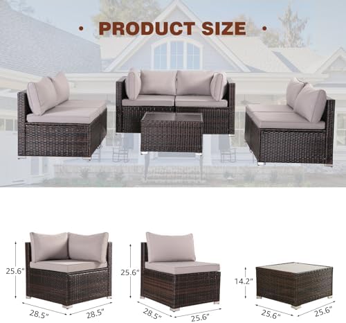 FHFO 7 Pieces Outdoor Patio Furniture Set Modular Patio Set Wicker Outdoor Sectional Sofa Set PE Rattan Patio Conversation Sets with Cushions & Coffee Table for Outside, Garden, Poolside, Porch, Gray