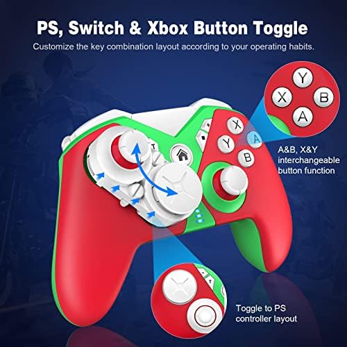 🎮【Multifunction Wireless Controller】: This switch controller is suitable for Nin-tendo Switch/PC Games/IOS & Android phones. Not only can be adjusted for PS&XBOX button layout. It also has functions such as Macro, Precision Shooting, Turbo function, High-frequency Vibration function, Multi gyroscope sensor, 2 Gear trigger adjustable, One-key wake-up, and Screenshot function. It is very easy to use and is the best product for people who like games.