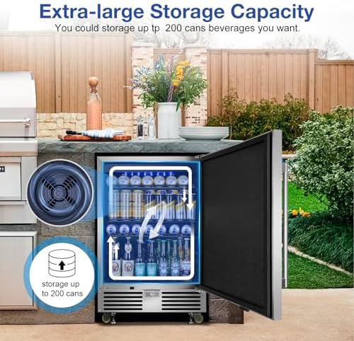 【Fast Cooling & Efficient Insulation】Our outdoor fridge has a powerful compressor that could chill your beverages and wines efficiently even in outdoor environments. Besides, the 24-inch beverage cooler has a multi-layer insulation materials door design which could offer a supper good insulation.
