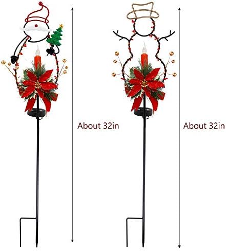 FORUP Outdoor LED Solar Powered Candle, Xmas Pathway Lights, Snowman Santa Christmas Lawn Yard Ornament, Set of 2
