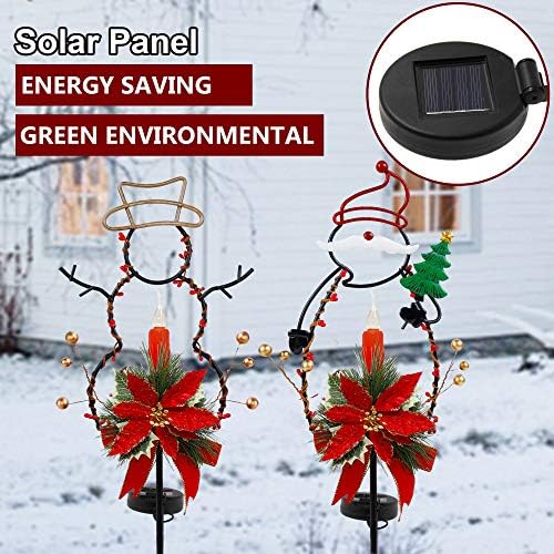 FORUP Solar Christmas Yard Decorations, Outdoor LED Solar Powered Candle, Xmas Pathway Lights, Metal Solar Garden Stake Lights, Snowman Santa Christmas Lawn Yard Ornament, Set of 2