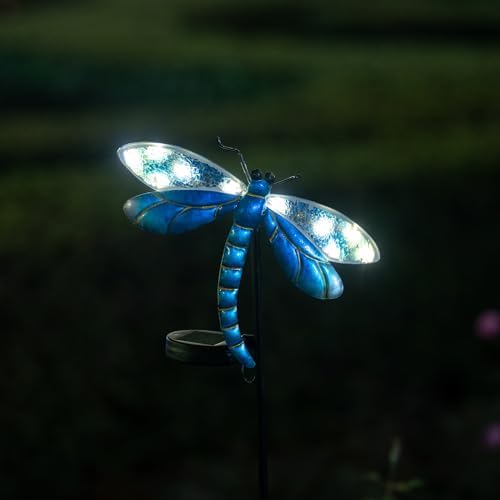 Garden Solar Lights Outdoor,Dragonfly Pathway Light Decor Waterproof,Metal Stakes Lights Decorative for Lawn,Patio,Yard,Backyard,Dragonfly Decorations,Size 9.21 * 1.65 * 32.68 Inches
