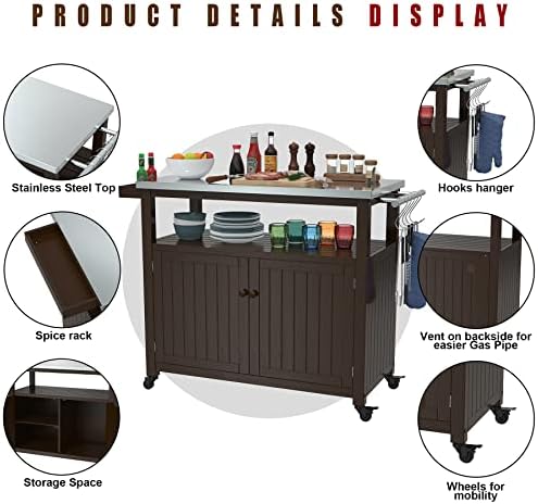 Smart Design: Stainless steel top for food preparation. Open shelf in the middle for easy access storage of your plates,cups or some food items. Divided cabinet allows you to store standard 20LBS propane cylinder in one side(hole in back for gas line access)