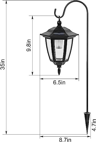 🏡【EASY TO INSTALL WITHIN ONLY SEVERAL COMPONENTS】No addition electrical wiring and tools required to install this solar outdoor lights. Eliminate cumbersome and complicated installation operations. Simply connect the pole, shepherd hook, ground spike and hang up the solar light to complete the installation and get started. The lanterns can also be used without the hooks for hanging anywhere. Note: There is a tab on the light cover, please remove it before charging.