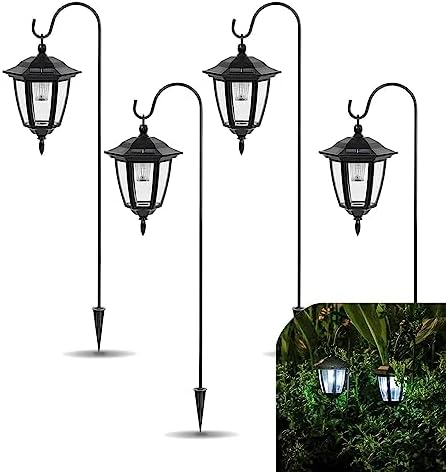 Hanging Solar Lights Outdoor Waterproof, 35 Inch Shepherd Hook Lights with 4 Shepherd Hooks, Solar Lantern Lights for Garden Decor, Pathway, Porch Decor, Patio, Backyard and Yard, 4 Pack