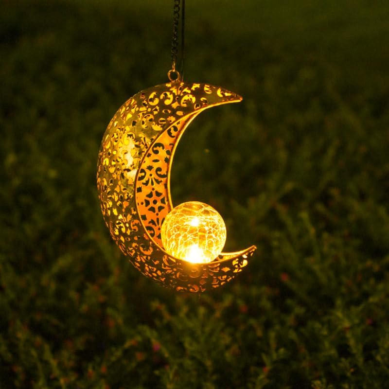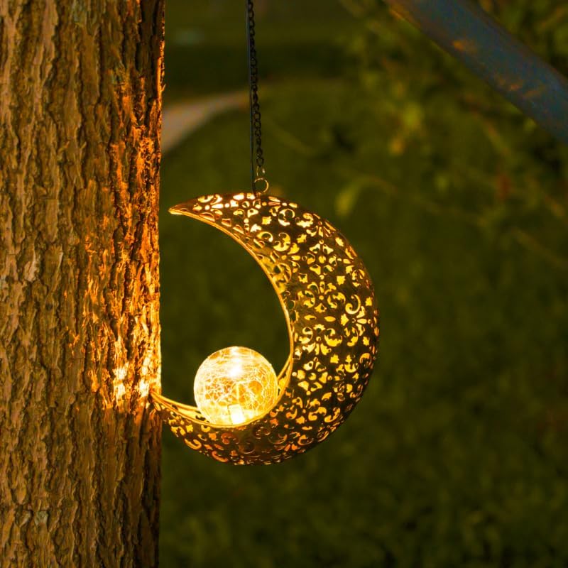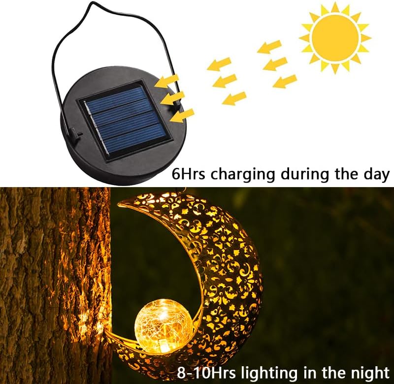 Hanging Moon Metal Solar Lights, a great choice for your garden,pathway,walkway,lawn or patio.