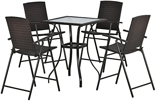 [5-Piece Rattan Dining Set] Try some new styles for your dining time. Enjoy your quality time with this PE wicker&iron frame counter height table set while having a lunch with your family or small talk with your friends in the evening. With 4 dining chairs and 36.8″ counter height table, this dining set will be perfect for family to dine or relax in the sunshine.