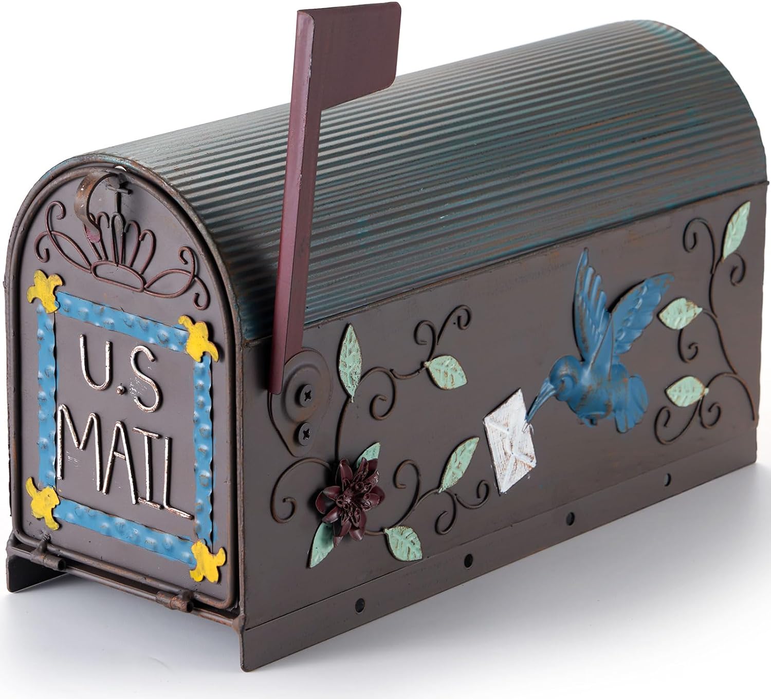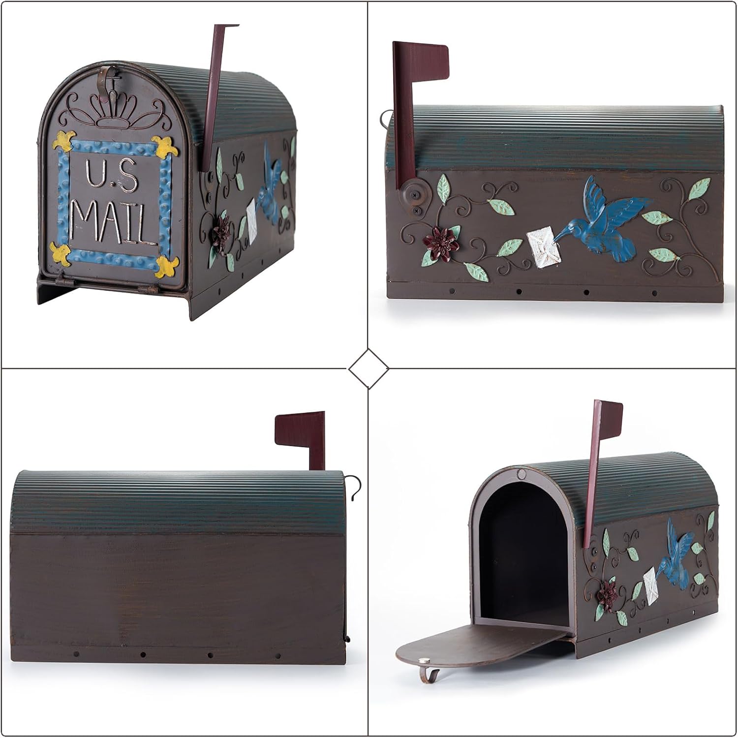📫【MAILBOX APPEAL】The mailbox is decorated with flowers, hummingbird patterns on one side, and regular concave and convex striped lines on the top, and the mailbox door has beautiful decoration, which looks elegant and very attractive. Installing this decorative and functional mailbox outdoors will attract the attention of neighbors and passers-by, making it the most unique mailbox on the street.