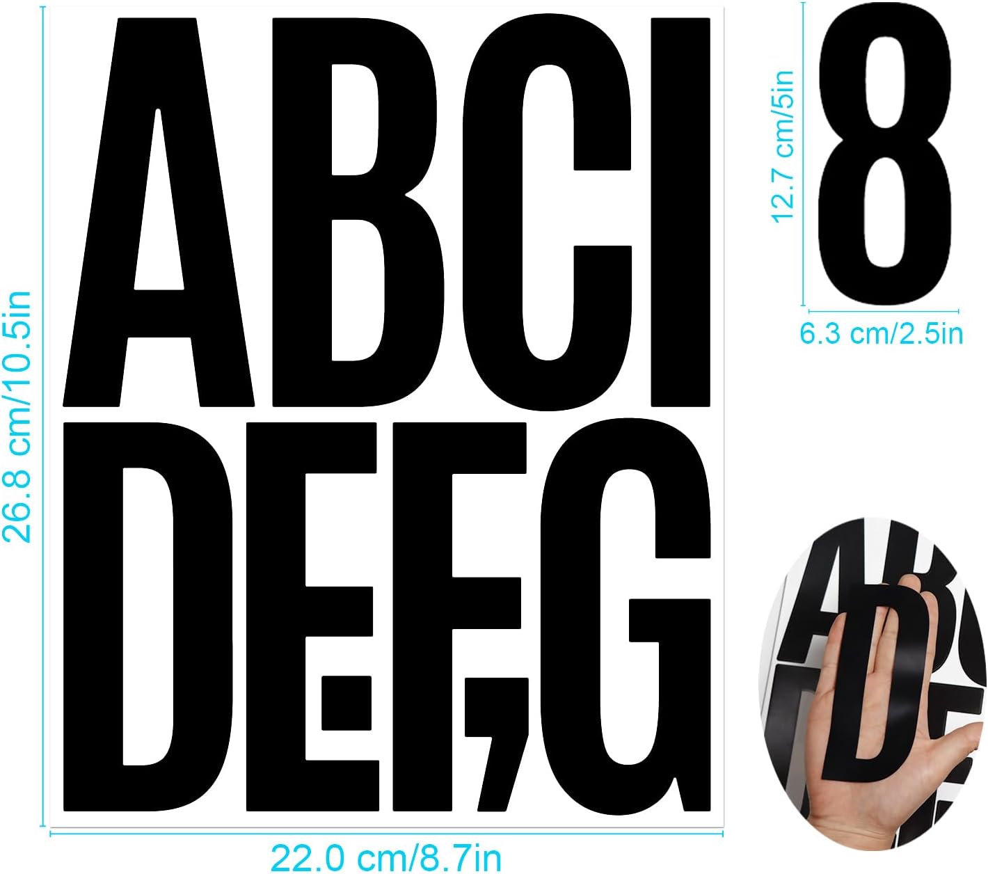 HLLNME 300PCS 5 In Letter and Numbers Stickers 30 Sheets Vinyl Self Adhesive Stickers for Mailbox,Signs,Window,Door,Cars,Homes, Businesses, Address Numbers,Indoor or Outdoor(Black)