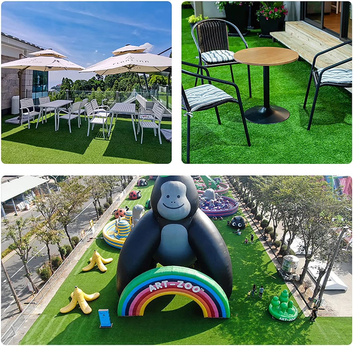 ★Easy installation: Our artificial turf come in a roll. You only need to choose an area to put and roll out the grass and you are done! Can be cut to fit size. When laying multiple pieces of artificial turf, please keep the grass piles in the same direction, which makes sure the color looks consistent.