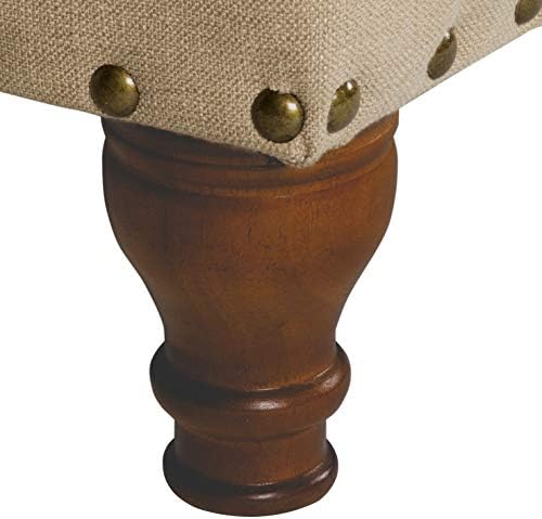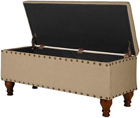Homepop Home Decor | Upholstered Bench with Nailhead Trim | Large Ottoman with Storage for Living Room & Bedroom | Decorative Home Furniture, Tan Linen