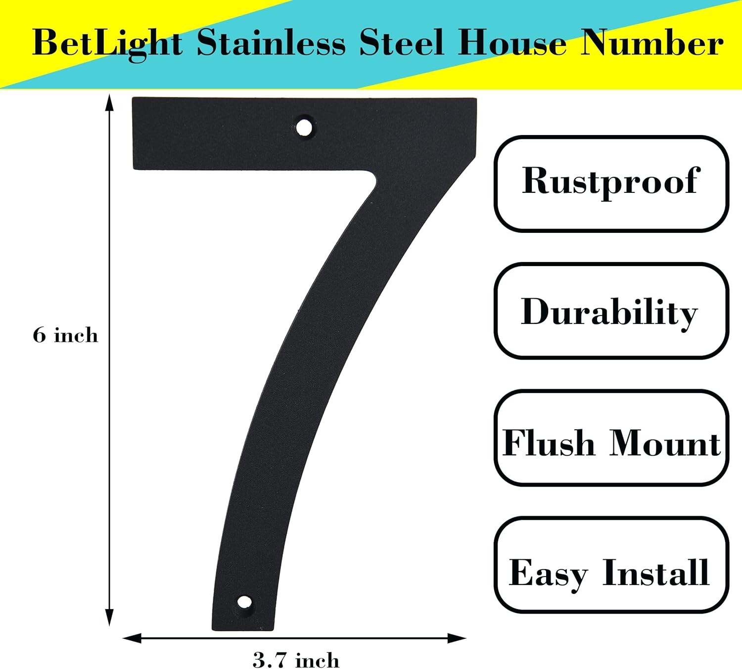 House Numbers for Outside- 6 Inch Screw in Stainless Steel Mailbox Numbers-Rustproof/Easy-to-install/Anti-fade/Black/Number 7