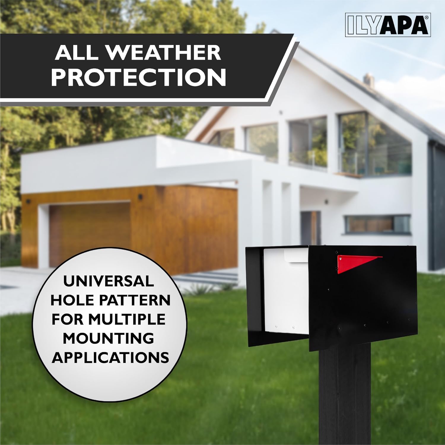 ALL WEATHER PROTECTION for your mail. This outdoor metal, ready to post large square modern mailbox will protect your curbside mail from the elements outside for years to come. Elevate your home’s curb appeal with Ilyapa’s black and white modern architectural mailbox post mount, featuring a sleek and stylish design.