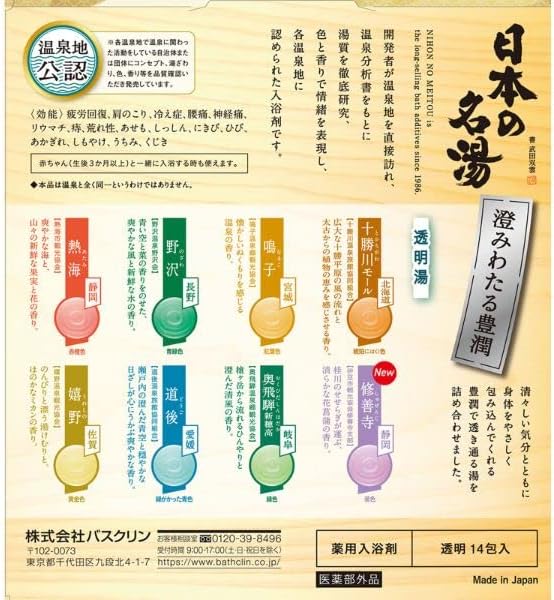 Japanese Bath Salt Samurai Bathclin Clear Hot Spring Assortments 30g x 14 Packages
