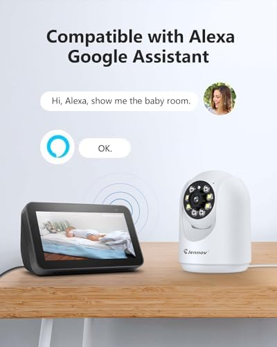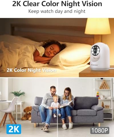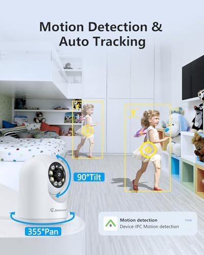 Jennov 2K Pan/Tilt Indoor Cameras for Home Security – 2.4 GHz Pet Dog Camera with Phone App, WiFi Baby Camera Monitor, Color Night Vision, Motion Detection, Auto Tracking, Compatible with Alexa