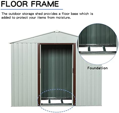 DURABLE CONSTRUCTION: The metal shed has a galvanized steel frame with a weatherized and water-resistant finish, which makes it great to use and keep outdoors. Also has a sturdy base foundation support, which enhances the stability and keeps inner clean and sealed.