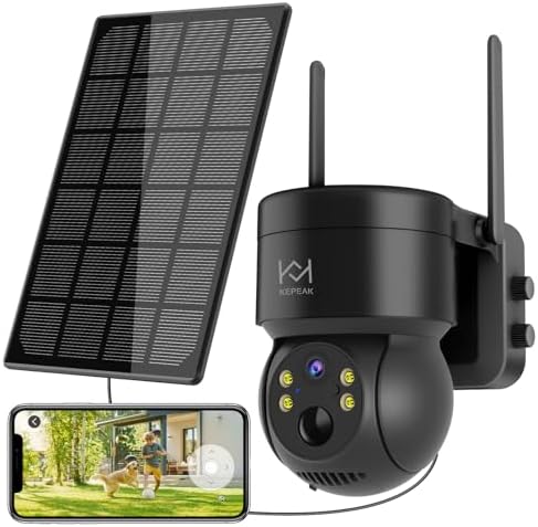 KEPEAK Solar Security Camera Wireless Outdoor, Battery Powered Cameras for Home Surveillance, PIR Detection, Color Night Vision, 2 Way Talk, 360° View, 2.4G WiFi Connection