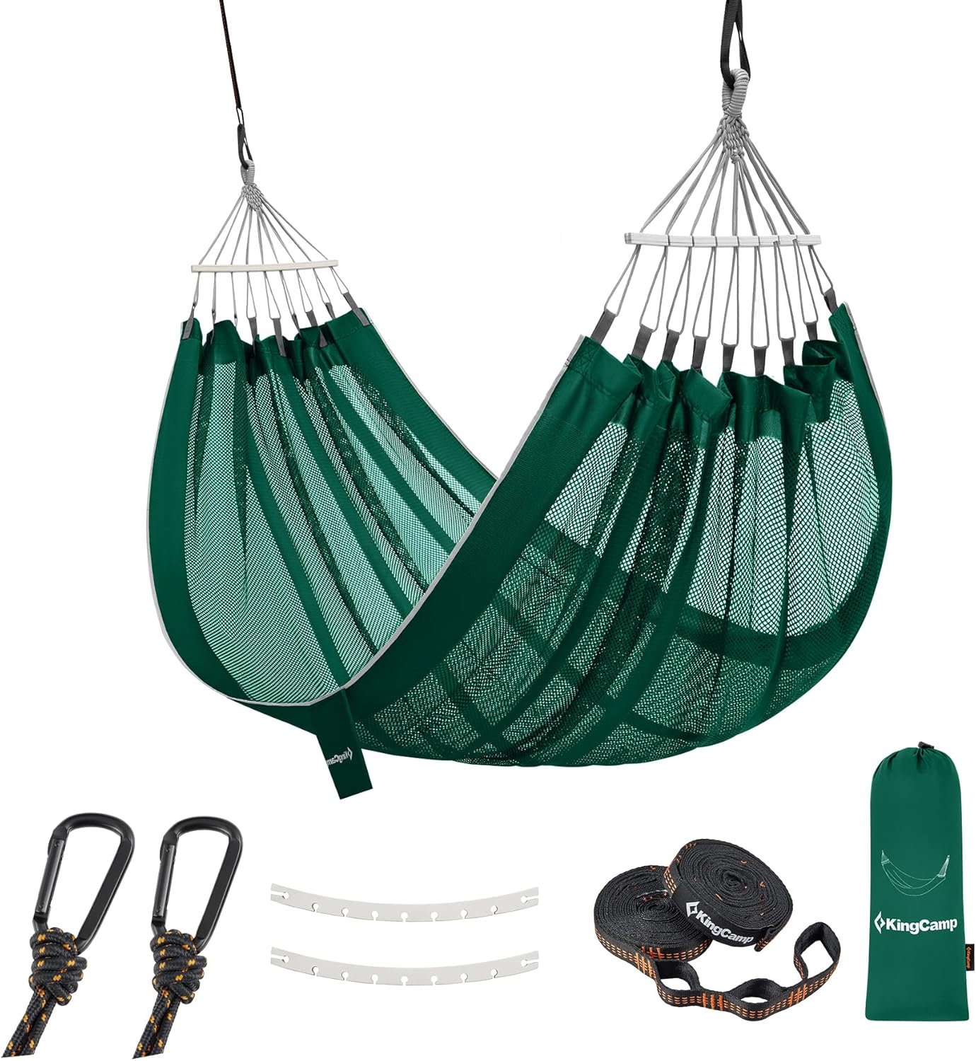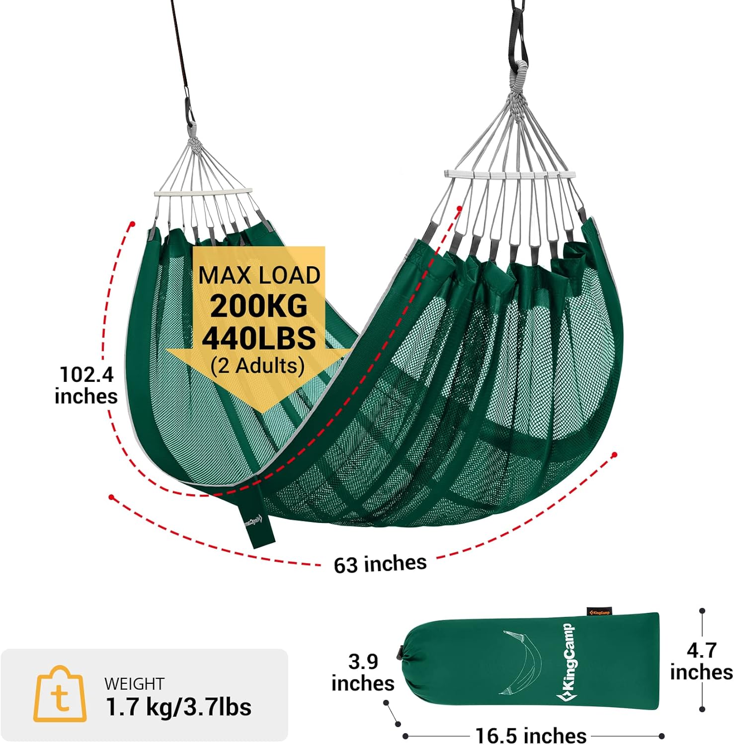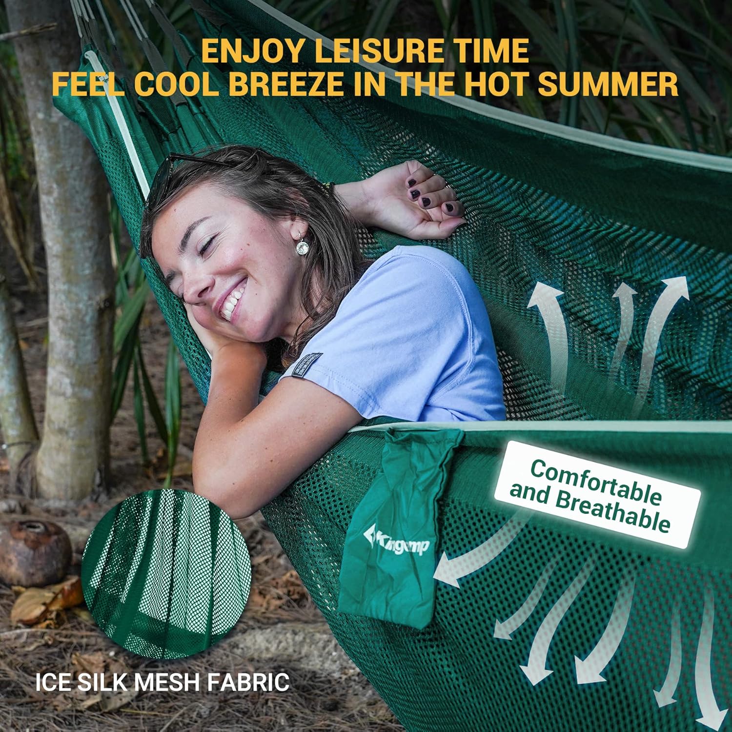 KingCamp Double Mesh Hammock, Camping Hammock Breathable Portable Outdoor/Indoor Hammocks Tree Hammock for Camping Backpacking, Hiking, Backyard, Patio Support to 440lbs, 2 Tree Straps (Petrolblue)