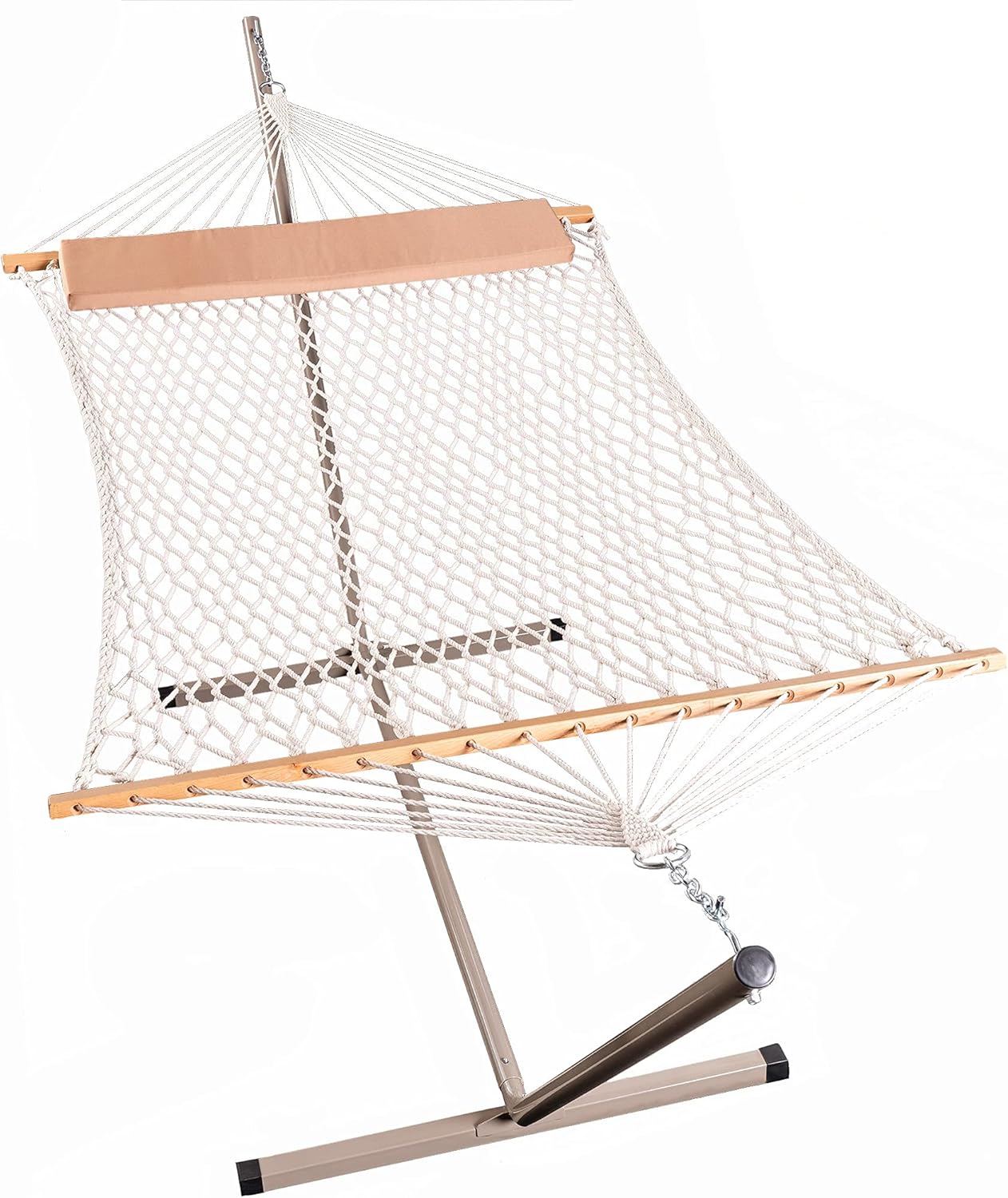 Lazy Daze Hammocks 12 Feet Steel Hammock Stand with Cotton Rope Hammock Combo,Quilted Polyester Hammock Pad and Pillow (Tan)