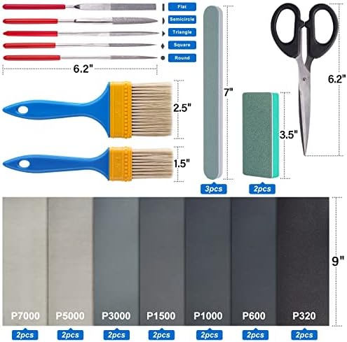 High-Quality Sandpaper: The epoxy resin polishing kit has 7 kinds of sandpaper (320#, 600#, 1000#, 1500#, 3000#, 5000#, 7000#), two of each kind, 14 sheets in total, made of coarse-grained silicon carbide production. It has the characteristics of anti-blocking, anti-static, flexible, wear-resistant, and can be polished and smooth resin crafts. The sandpaper can be cut into small pieces according to your needs.
