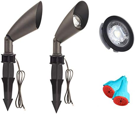 LIT-PaTH LED Landscape Pathway Light, 12V Low Voltage, 5.5W 200 Lumens, 40 Degree Spotlight for Outdoor Yard Lawn, Die-cast Aluminum, Water-Proof, Bronze Finish-3000K, 2-Pack