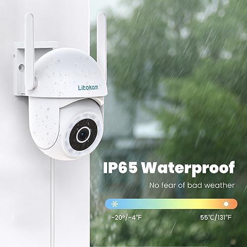 litokam 4MP Security Camera Outdoor, 2.5K Camera Wireless for Home Security Outside with Color Night Vision, 360° PTZ Home Camera with AI Motion Detection, Siren & 2-Way Talk (No Monthly Fee)