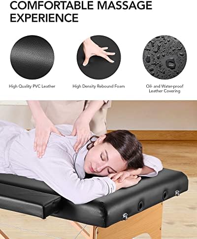 💆🏼♀️【Sturdy and Stable Massage Table】The massage bed has a 2-inch-thick sponge, give you a soft and comfortable experience. The massage table is made of high-quality beech wood, reinforced hardwood corner blocks for superior strength to bear up to 496LBS. In addition, the massage table cover draped in a luxurious PU leather, durable, soft, and easy to clean.