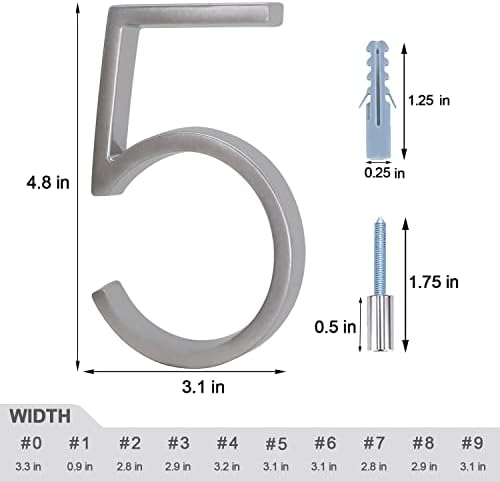 Be the first to review “Metal Numbers for House Outside, 5 Inch Modern House Numbers, DIY Floating Address Numbers with Screws, Rust Free Zinc Alloy, Silver Number 5”
