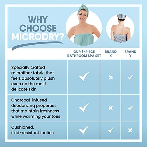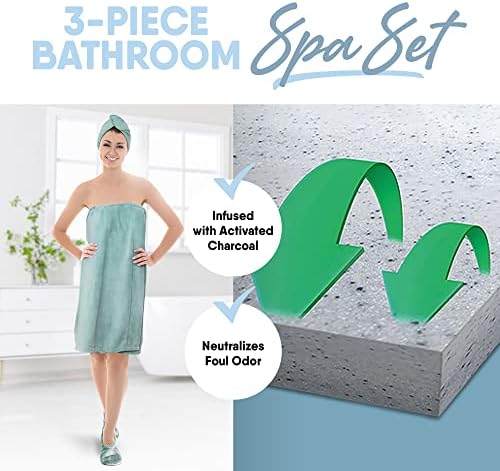 MICRODRY 3-Piece Bathroom Spa Set, Includes Quick Drying Plush Microfiber Hair Towel Wrap, Body Wrap, and Cushioned SoftLux Memory Foam Footies House Slippers, Aqua