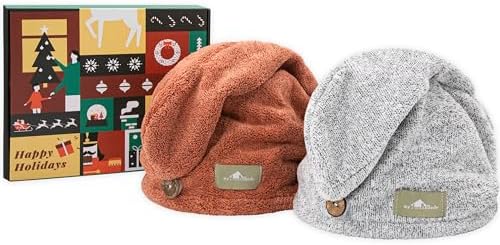 ✔ 【Holiday Vibes】Hair turban towel set includes two high-quality dry hair caps with specially designed SANTA pattern button, adding a touch of festive charm to your hair drying routine.
