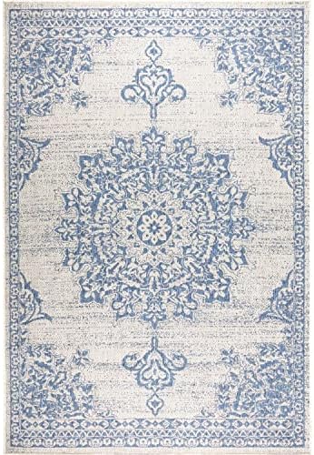Nicole Miller New York Patio Country Azalea Transitional Medallion Indoor/Outdoor Area Rug, Grey/Blue, 3’11″x5’2″