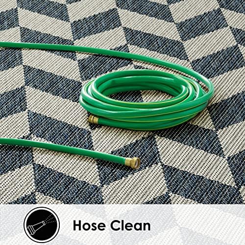 Nicole Miller New York Patio Country Calla Contemporary Herringbone Indoor/Outdoor Area Rug, Blue/Cream, 6’6″x9’2″