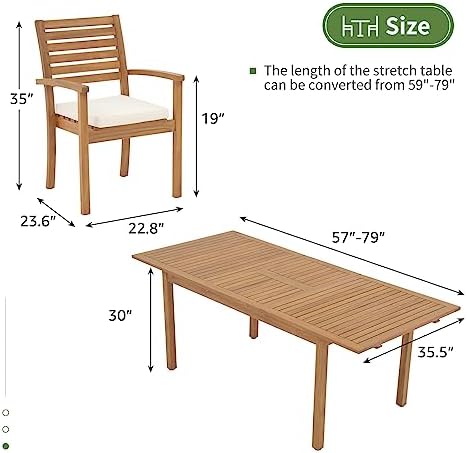 FSC Certified Wood: Our 7-piece outdoor dining set is constructed of sustainable FSC-certified acacia wood to ensure the chair can hold up to 300 lbs! The surface is coated with high-grade oil paint making the patio table and chairs weather-proof and built to last.