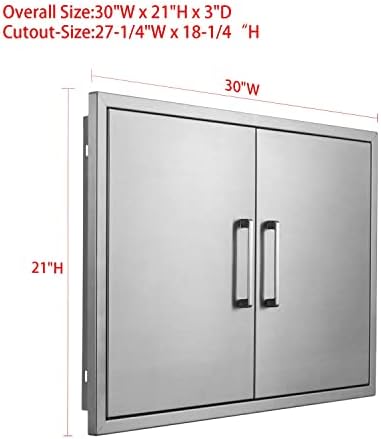 Outdoor Kitchen Doors- 30″W x 21″H – Stainless Steel BBQ Double Access Door,Flush Mount for Outdoor Kitchen and BBQ Island