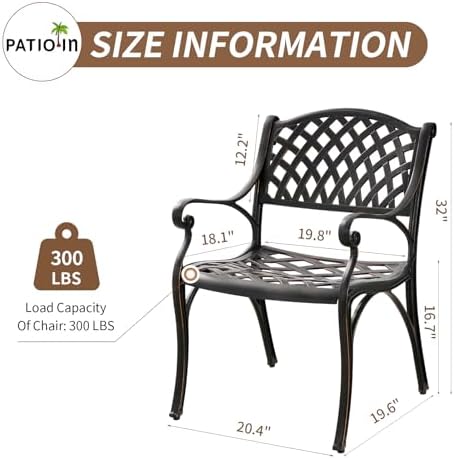 Be the first to review “PATIO-IN 3 Piece Patio Bistro Set, Outdoor Cast Aluminum Dining Set, Patio Bistro Furniture Set Round Table with Umbrella Hole for Backyard Lawn Garden”