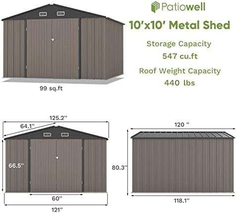 Patiowell 10 x 10 FT Outdoor Storage Shed,Metal Yard Shed with Design of Lockable Doors, Utility and Tool Storage for Garden, Patio, Backyard, Outside use,Brown